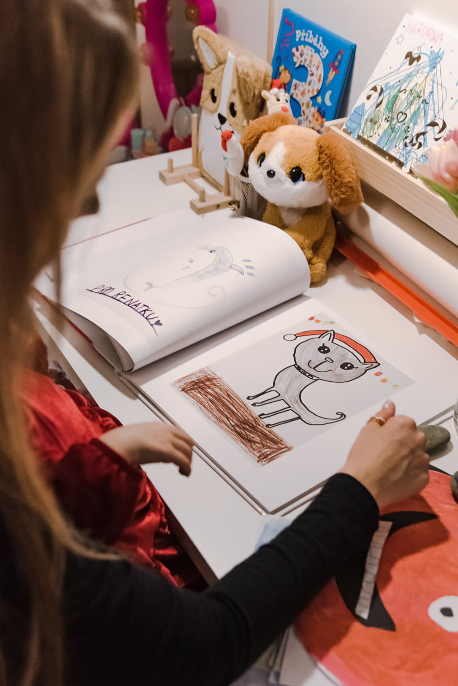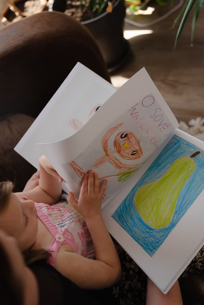 Najednou bylo doma plno barevných čmáranců, otisků ručiček, prvních pokusů o domečky, sluníčka a duhy, a hlavně spousta lásky, smíchu a dojetí.